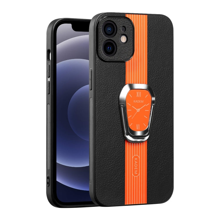 Estuche Magnético para iPhone 12 Mini con Parte Trasera de Cuero Litchi y Soporte (Naranja)