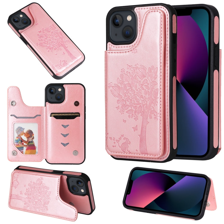 Estuche a Prueba de Golpes Patrón Árbol de Gato para iPhone 13 Mini (Oro Rosa)
