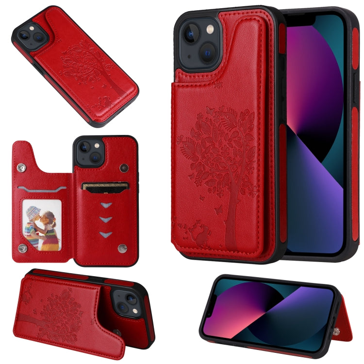 Estuche a prueba de golpes para iPhone 13 Mini con patrón de árbol de gato (Rojo)
