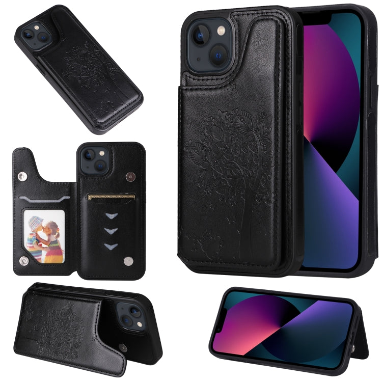 Estuche a Prueba de Golpes para iPhone 13 Mini Patrón Estampado Árbol de Gato (Negro)