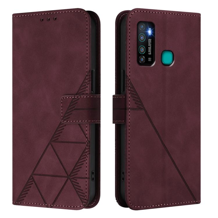 Funda de Cuero con Tapa y Relieve 3D para Infinix Hot 9 Pro/9 Crossbody (Rojo Vino)