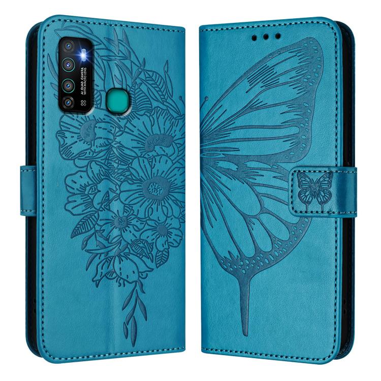 Funda de Cuero para Infinix Hot 9/9 Pro con Diseño de Mariposa en Relieve (Azul)