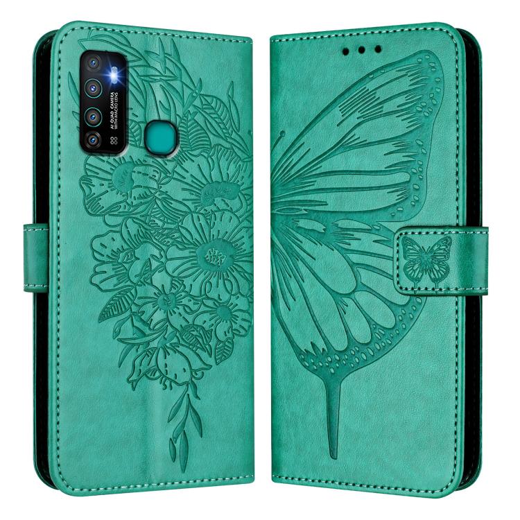 Funda de Cuero para Infinix Hot 9/9 Pro con Diseño de Mariposa en Relieve (Verde)