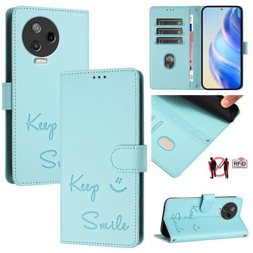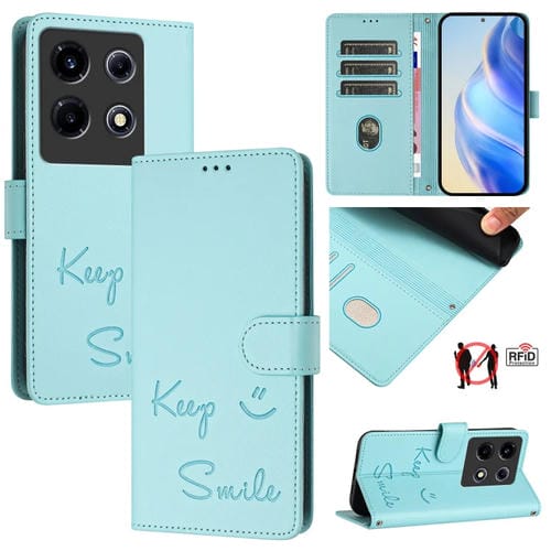 Funda de Cuero Rfid con Relieve Sonriente para Infinix Hot 30 5G (Verde Menta)