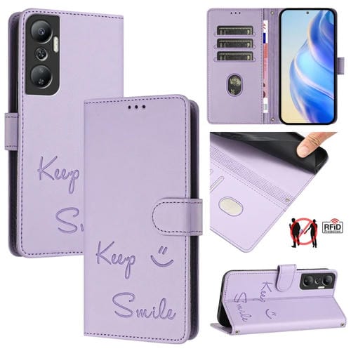 Funda de Cuero Rfid con Relieve Smile para Infinix Hot 20 Play (Morado Claro)