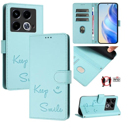 Funda de Cuero Rfid con Relieve Sonriente para Infinix Note 30I (Verde Menta)