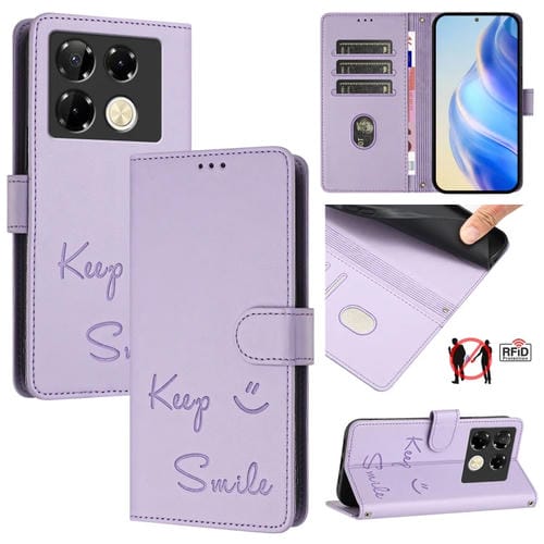 Funda de Cuero Rfid con Relieve Sonriente para Teléfono Infinix Note 40 4G (Violeta)