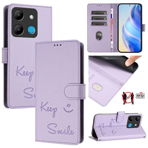 Funda de Cuero Rfid con Relieve Sonriente para Infinix Hot 30 5G (Violeta)