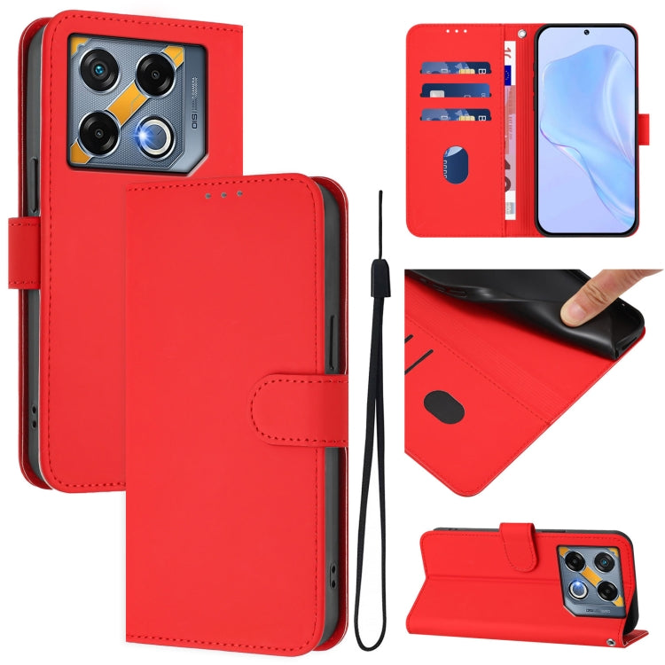 Funda de Cuero para Infinix GT 20 Pro 5G con Textura de Piel y Cordón (Rojo)