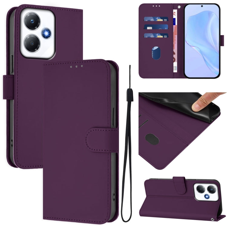 Funda de Cuero con Cordón para Infinix Hot 30 Play NFC 4G con Tacto de Piel (Violeta)