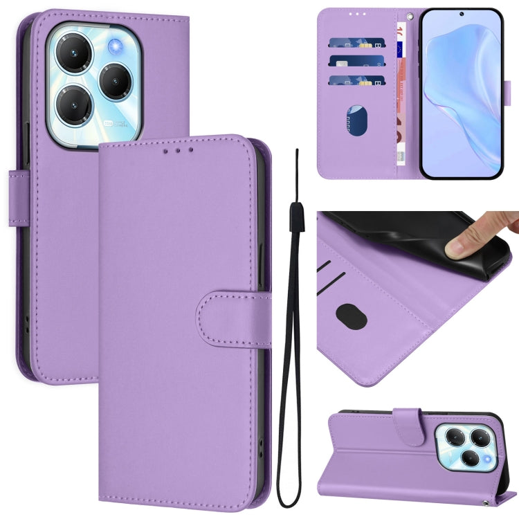 Funda de Cuero con Cordón para Infinix Zero 30 5G con Tacto de Piel (Morado Lavanda)