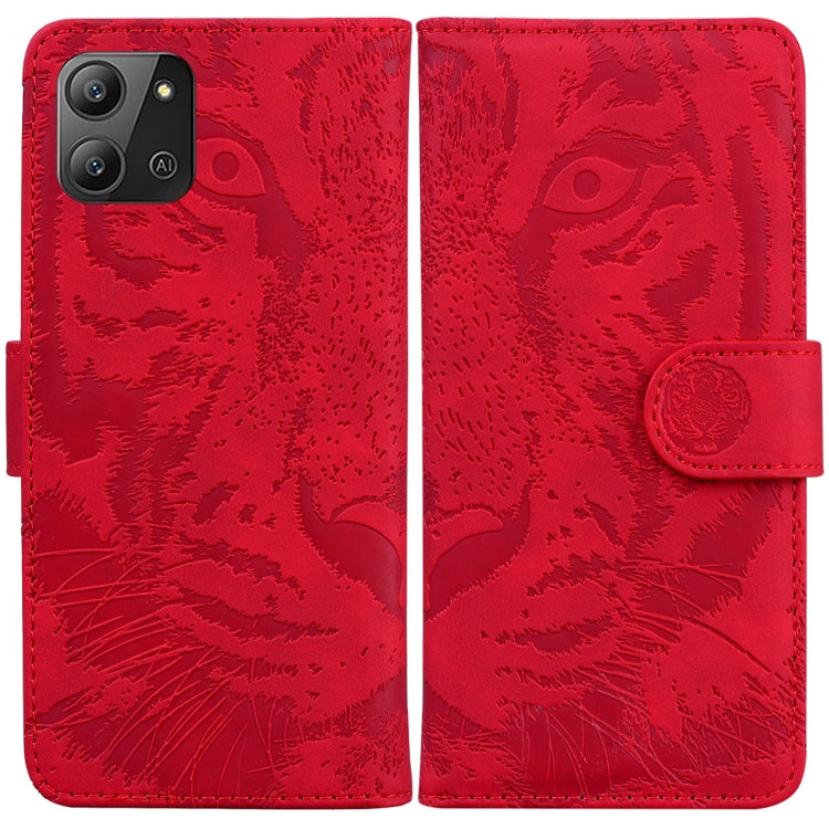 Funda de Cuero con Tapa Horizontal para Infinix Hot 11 2022 con Patrón Tiger (Rojo)