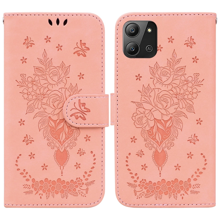Funda de Cuero En Relieve para Infinix Hot 11 (2022) Butterfly Rose (Rosa)