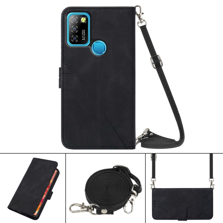Funda de Cuero para Infinix Hot 11 Play Cross Clebody 3D Grabado en Relieve (Negro)