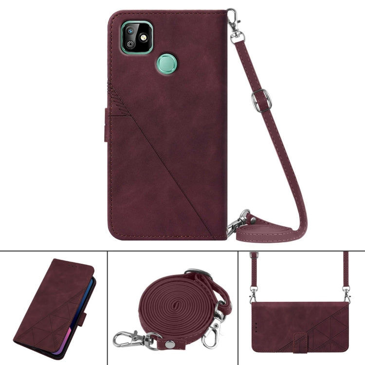 Funda para Infinix Smart HD 2021 X612 Cuero en Relieve 3D Crossbody (Rojo del Vino)