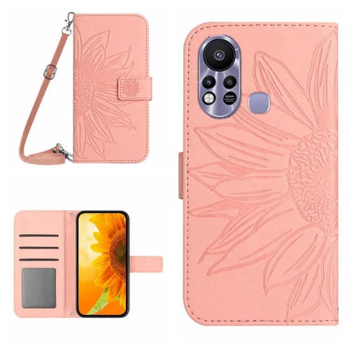 Funda Flip de Cuero para Infinix Hot 12I con Cordón y Diseño Sun Flower (Rosa)