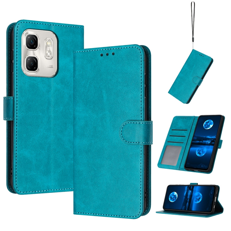 Funda de Cuero Textura Becerro con Costuras para Infinix Hot 50I (Azul)