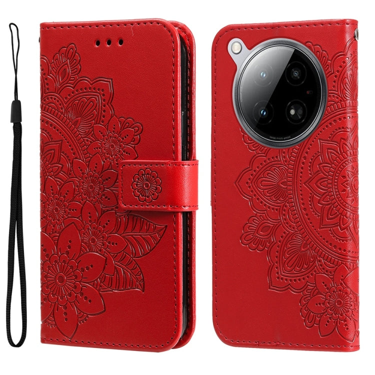 Funda de Cuero con Relieve Flores Siete Pétalos para Infinix Zero 40 4G/5G (Rojo)