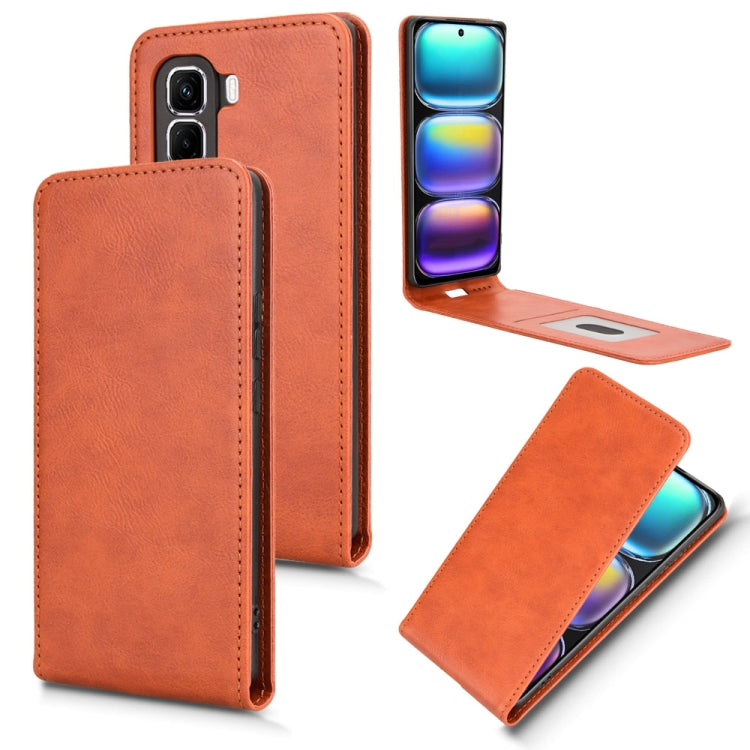 Funda de Cuero con Tapa Vertical Magnética para Infinix Hot 50 Pro+ 4G (Marrón)