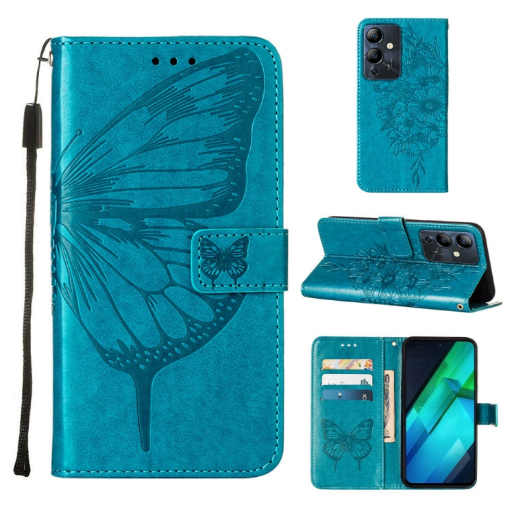 Estuche para Teléfono Infinix Hot 30I X669 Cuero Mariposa en Relieve (Azul)