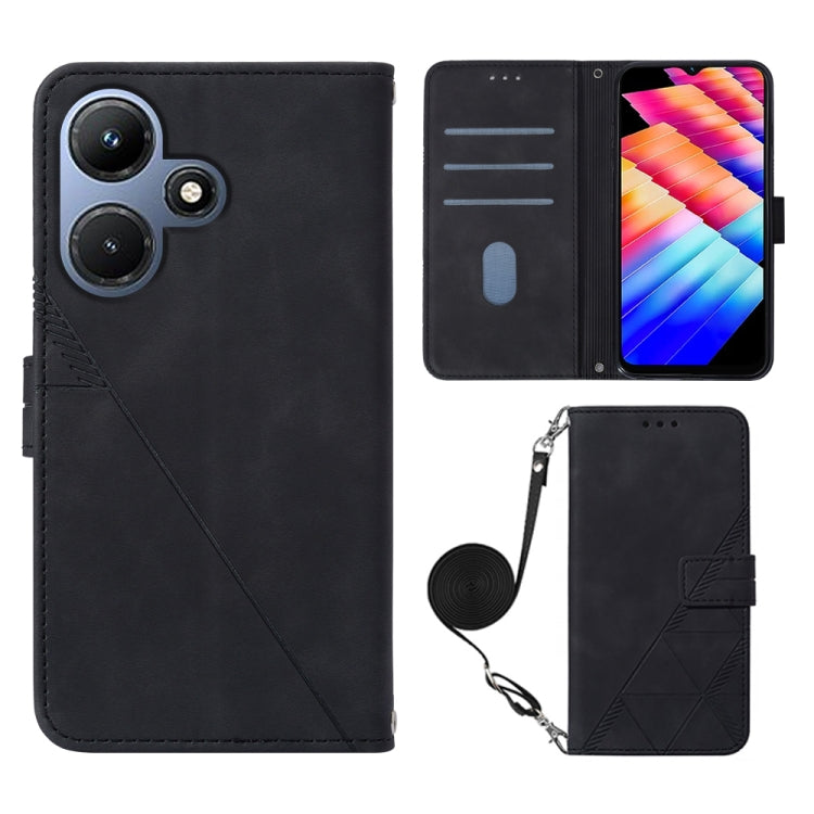 Funda de Cuero Crossbody 3D para Infinix Hot 30I / X669 con Tapa En Relieve (Negro)