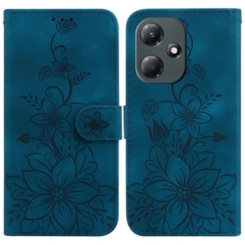 Funda para Teléfono Infinix Hot 30 Play X6835 de Cuero con Relieve Lily (Azul Oscuro)