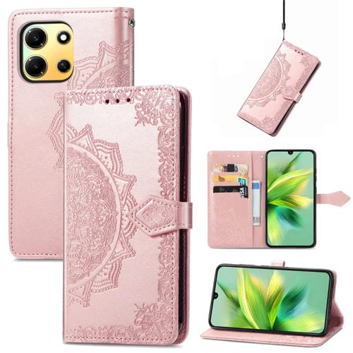 Funda para Teléfono Infinix Note 30I Cuero con Relieve de Flor de Mandala (Oro Rosa)