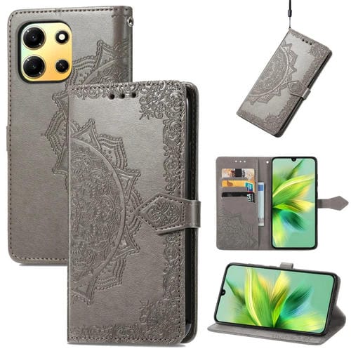 Funda para Teléfono Infinix Note 30I de Cuero con Relieve Flor Mandala (Gris)