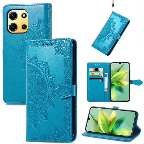 Funda para Teléfono Infinix Note 30I de Cuero con Estampado de Flores Mandala (Azul)