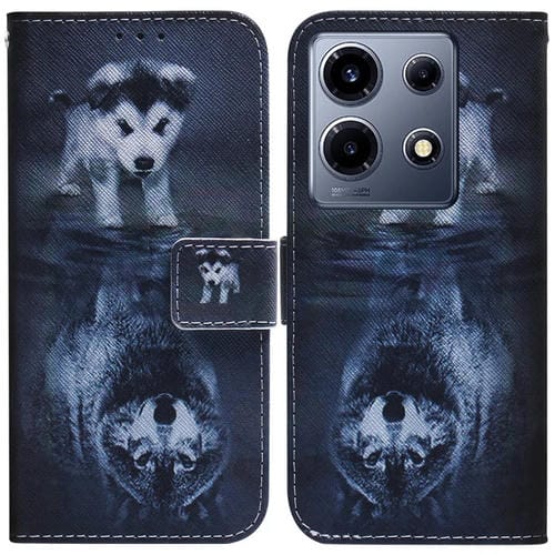 Funda de Cuero para Infinix Note 30 Vip con Tapa y Dibujo Coloreado (Lobo Blanco)
