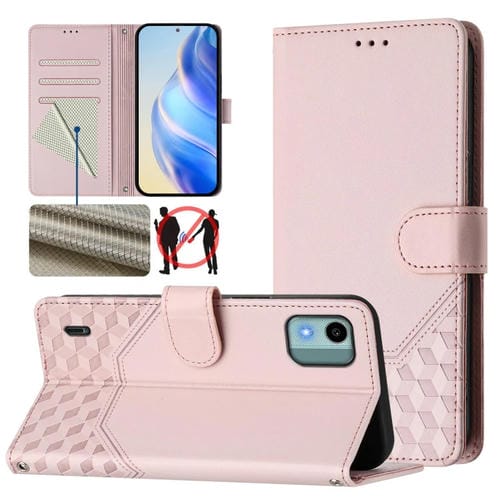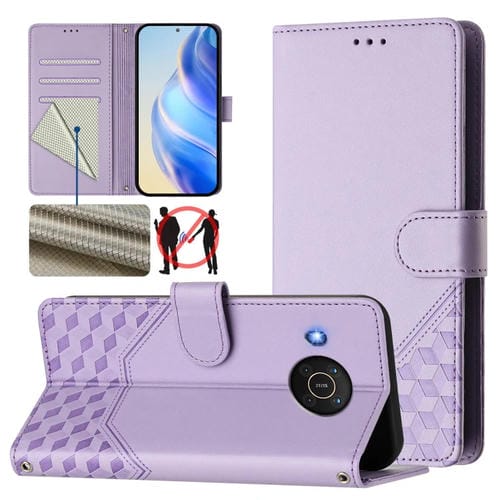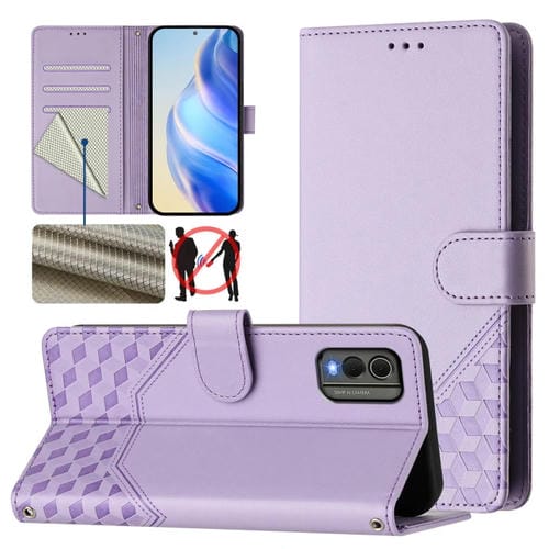 Funda de Cuero Rfid con Relieve en Panal para Nokia G42/G310 (Morado Claro)