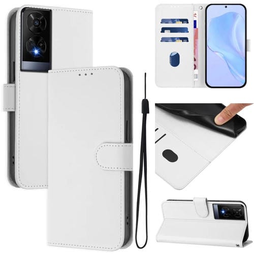 Funda de Cuero con Cordón para Teléfono TCL 30 4G 30 5G 30+ Tacto Piel (Blanco)