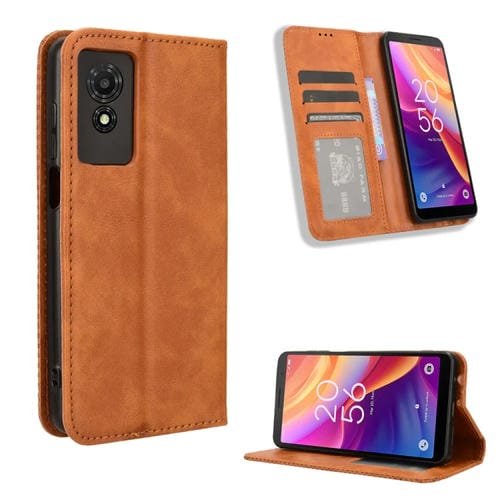Funda para TCL 50 Se 4G de Cuero con Textura Retro y Hebilla Magnética (Marrón)