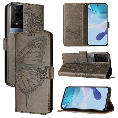Funda de Cuero para TCL 50Xe 5G con Diseño de Mariposa en Relieve (Morado Oscuro)