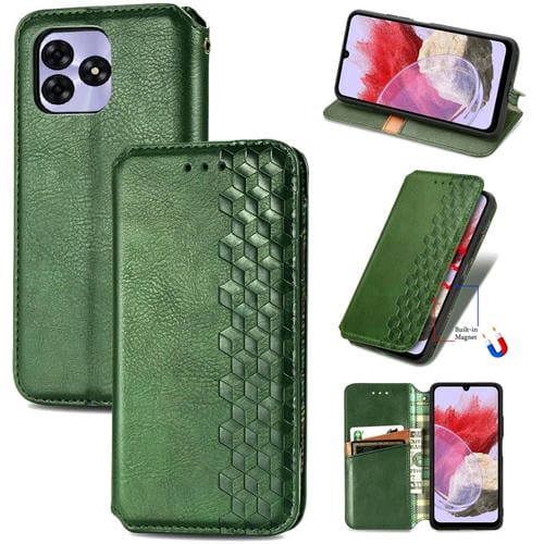 Funda de Cuero para Umidigi G6 5G con Textura de Puntos en Forma de Panal (Verde)