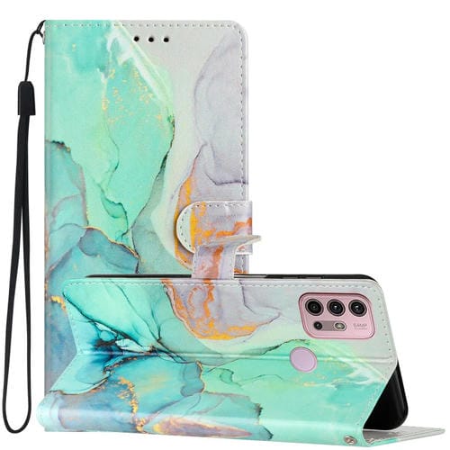 Estuche de Cuero para Motorola Moto G20 con Dibujo Coloreado Mármol Verde