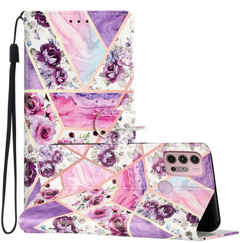 Estuche de Cuero para Motorola Moto G20 con Dibujo Coloreado Mármol (Púrpura)