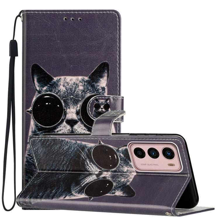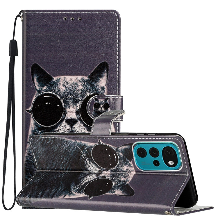 Estuche de Cuero para Motorola Moto G22 con Dibujo Coloreado Gafas de Sol Cat