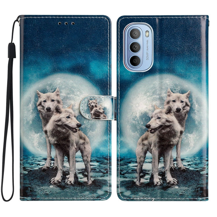 Estuche de Cuero para Motorola Moto G31 y G41 con Dibujo a Color (Twin Wolves)