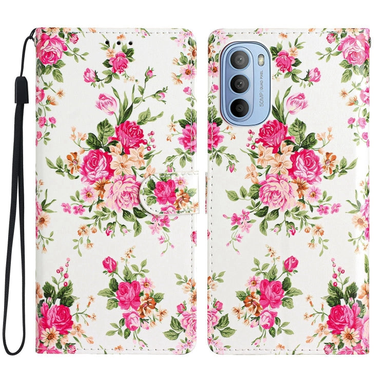 Estuche de Cuero para Motorola Moto G31 y G41 con Dibujo Coloreado Peonías