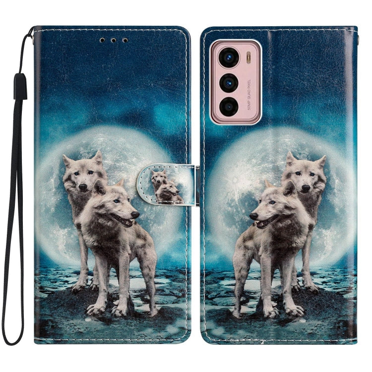 Estuche de Cuero para Motorola Moto G22 con Dibujo Coloreado Lobos Gemelos