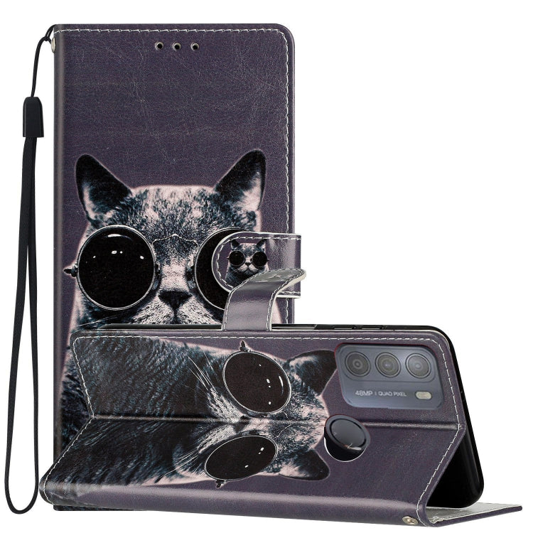 Estuche de Cuero para Motorola Moto G50 con Dibujo Coloreado Gafas de Sol Cat