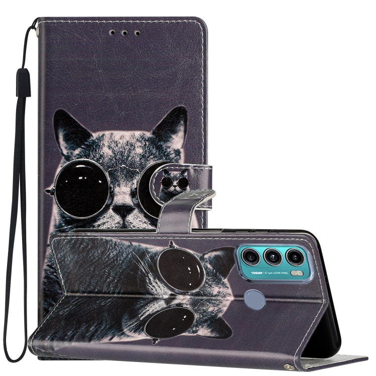 Estuche de Cuero para Motorola Moto G60 con Dibujo Coloreado Gafas de Sol Cat