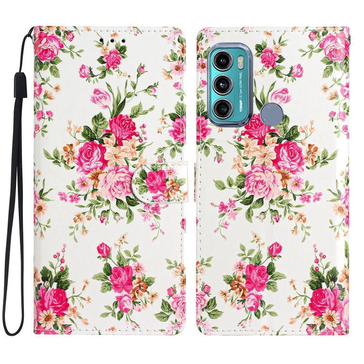 Estuche de Cuero para Motorola Moto G60 con Dibujo Coloreado de Peonías