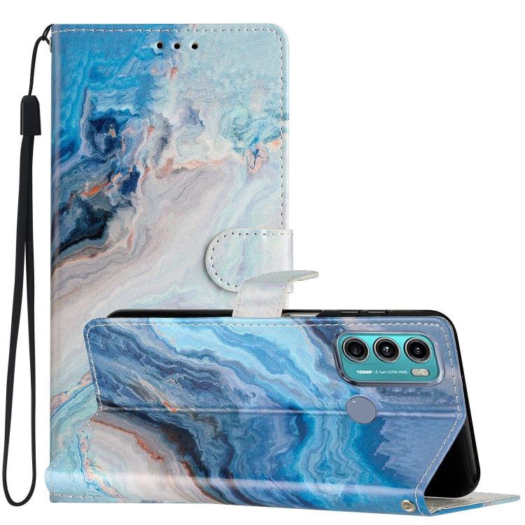 Estuche de Cuero para Motorola Moto G60 con Dibujo Coloreado Mármol Azul