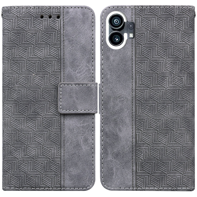 Estuche de Cuero para Nothing Phone 1 con Tapa en Relieve Geométrico (Gris)