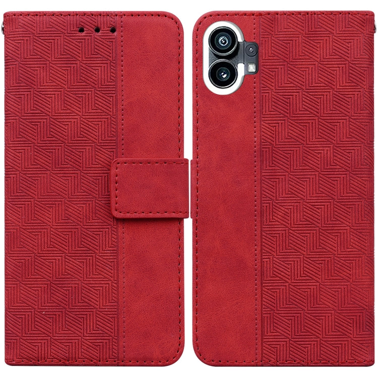 Estuche de Cuero para Nothing Phone 1 con Tapa en Relieve Geométrico (Rojo)
