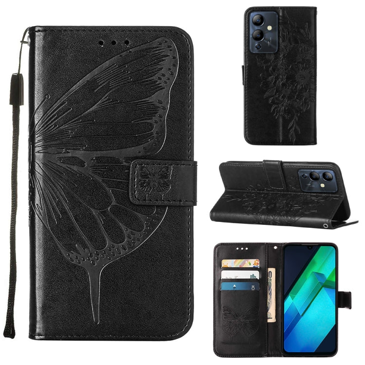 Estuche para Infinix Note 30 5G X6711 de Cuero con Mariposa en Relieve (Negro)