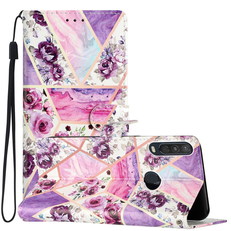 Estuche para Motorola Moto One Action de Cuero con Dibujo Coloreado (Mármol Púrpura)