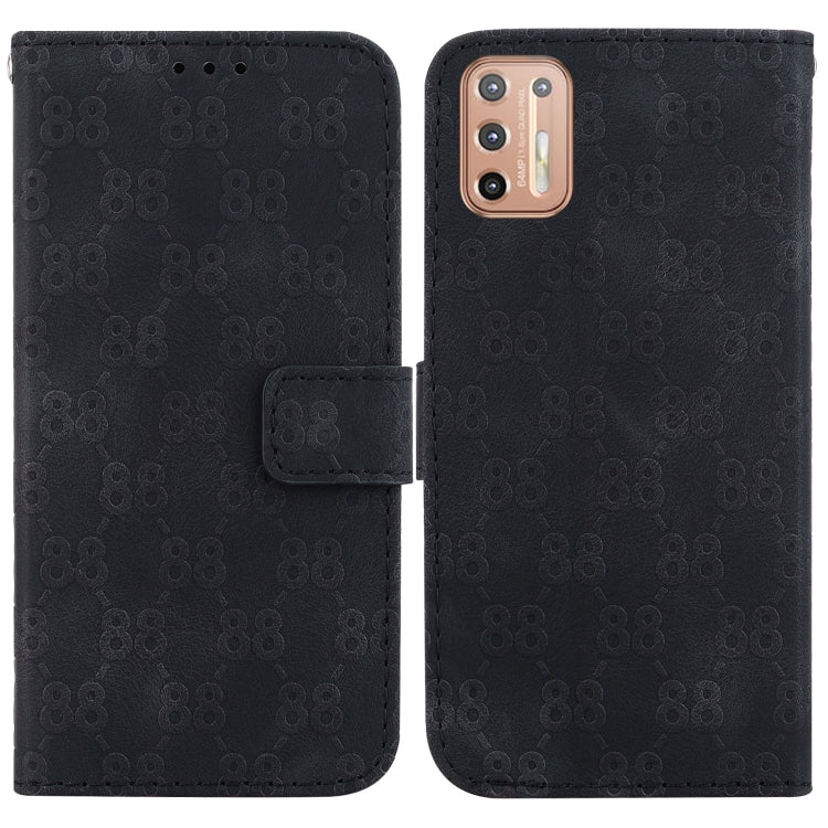 Estuche para Motorola Moto G9 Plus de Cuero en Relieve con Doble Forma de 8 (Negro)